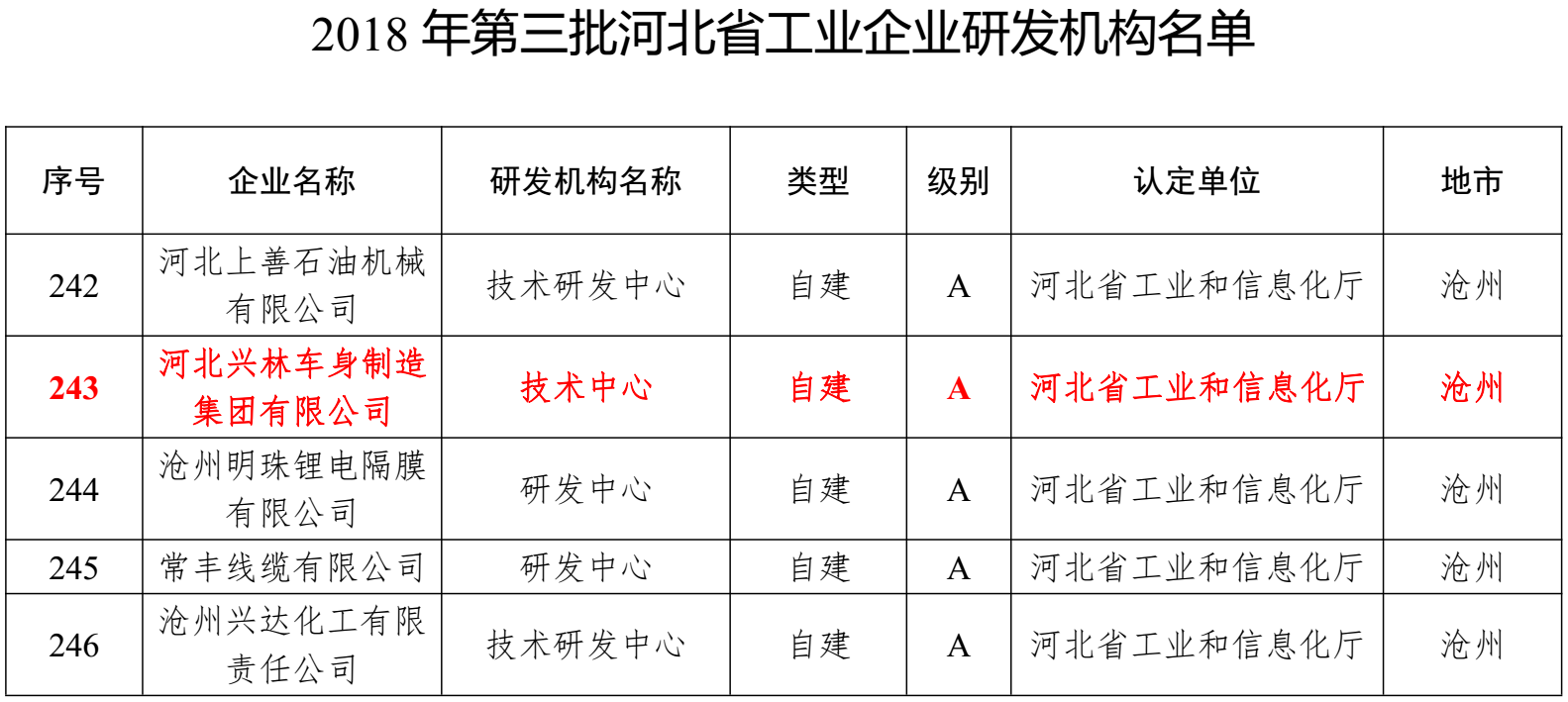近日獲悉,河北興林車身制造集團有限公司通過2018年第三批A級河北省工業(yè)企業(yè)研發(fā)機構認定,該證書表明對公司研發(fā)能力的高度認可。